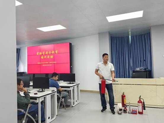 随后,根据学院学科特点及实验室危险源情况,保卫处消防科专家开展了实验室安全专题讲座并进行了灭火设备使用培训及进行了灭火现场实操演练。