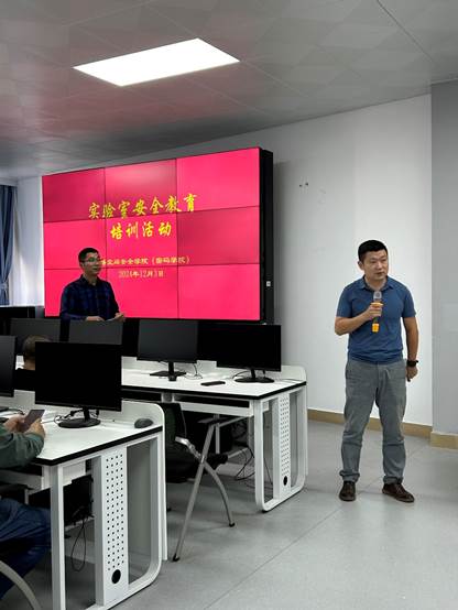 为了加强实验室安全管理,增强我院师生实验室安全意识,有效提升应急操作技能,提高风险防范和应急处置能力,根据学校实验室设备管理处《关于组织开展实验室安全教育培训活动的通知》(海大实〔2024)50号)要求,我院于12月3日下午举办实验室安全教育培训活动。学院分管副院长张殿,网络空间安全系主任徐紫枫,数据科学与大数据技术系主任李益红,综合办公室主任朱瑛,各实验室负责人、安全员、新进老师、以及部分研究生共约60人参加培训活动。活动由实验教学中心主任谭毓银主持。