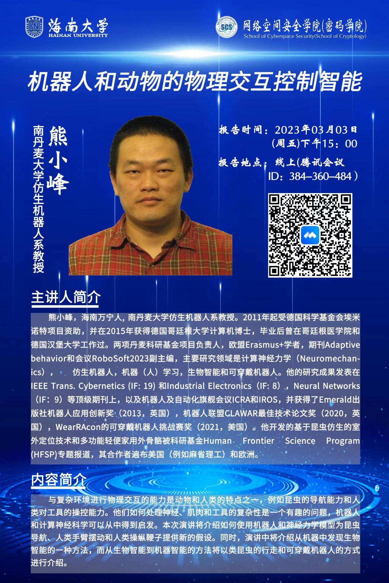 【能力提升之大培训】机器人和动物的物理交互控制智能 - 熊小峰教授主讲