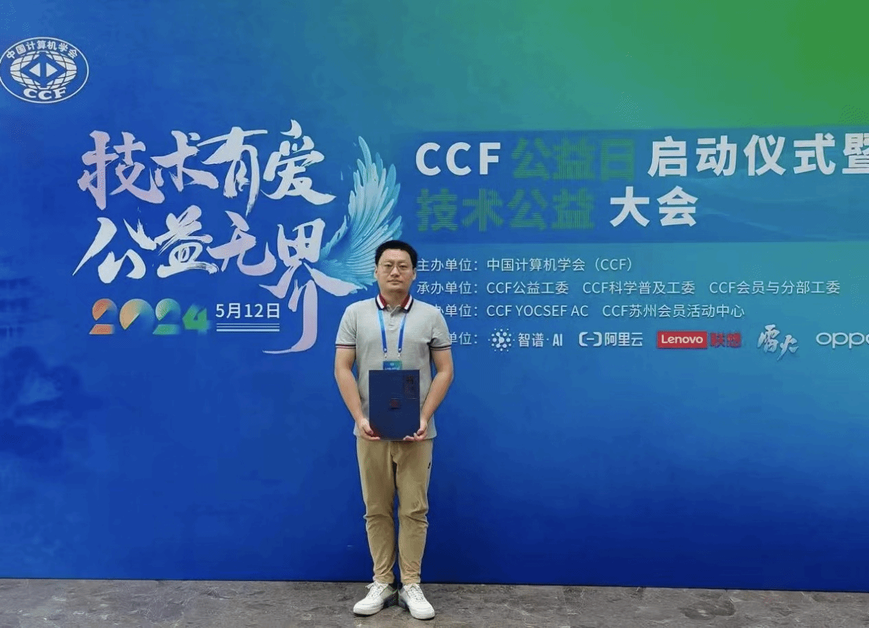 2024年5月12日,中国计算机学会(CCF)在苏州CCF业务总部举行了“技术有爱 公益无界”CCF公益日启动仪式暨技术公益大会,来自政府、产业、高校、科研院所的百余位专家学者齐聚苏州探讨技术公益发展未来。我院教师莫欣岳受邀参加大会,在上午的开幕式上正式受聘为CCF公益大使,并参加了下午的“公益科学传播”分论坛,与参会嘉宾、学者就“学术期刊视角下科学传播与创刊实践”议题进行了深入交流。