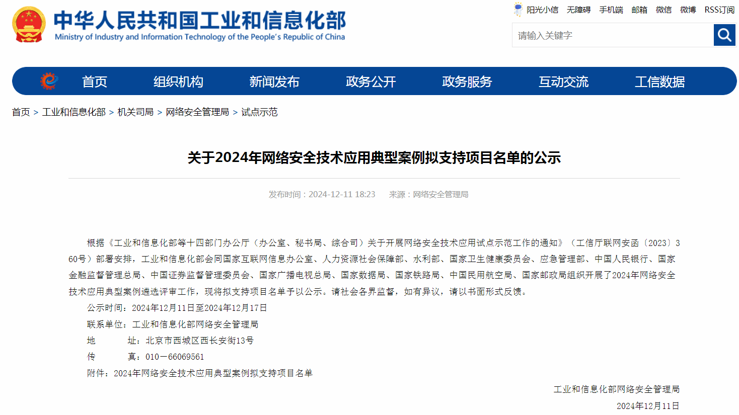 附:关于2024年网络安全技术应用典型案例拟支持项目名单的公示(https://www.miit.gov.cn/gyhxxhb/jgsj/wlaqglj/sdsf/art/2024/art_be80da0bd518429f8322ebfb9a026e30.html)