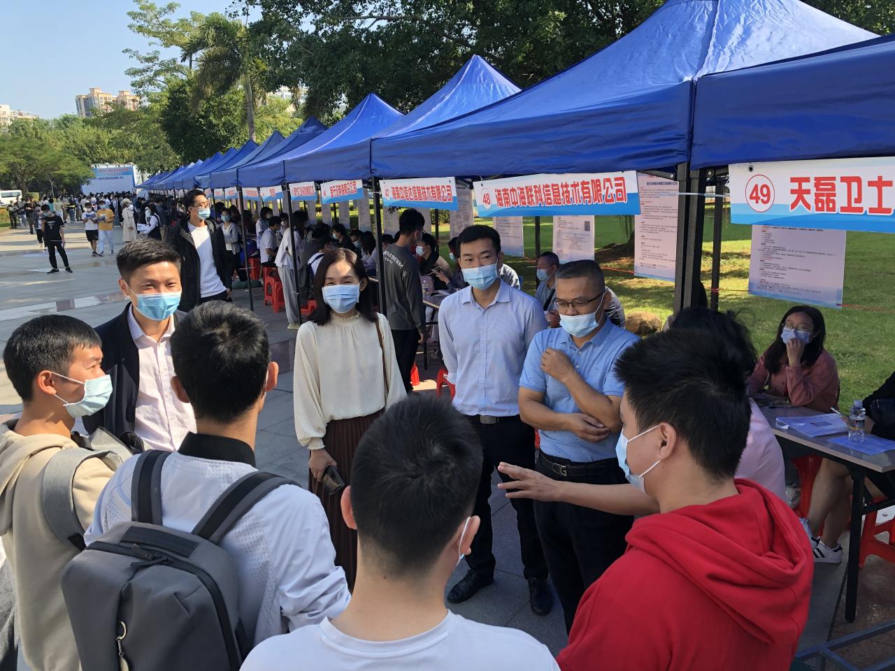 为了进一步搭建用人单位和毕业生供需交流平台,促进学生就业工作,2021年11月14日上午9:00,由海南省人才资源开发局(海南省就业局)与WilliamHill体育联合主办,招生就业处、网络空间安全学院(密码学院)、计算机科学与技术学院、信息与通信工程学院承办的海南自由贸易港招才引智活动——WilliamHill体育2022届毕业生秋季供需见面会(网安、计算机、信通类人才专场)在WilliamHill体育三号教学楼前广场举行。三个学院一千余名毕业生参加了双选会。招生与就业处副处长张婷,网络空间安全学院(密码学院)党总支书记陈广锐、计算机科学与技术学院院长杨天若、党委副书记(主持学院党委工作)王红英、信息与通信工程学院党委书记蒙秋妍等学院领导来到现场与用人单位和学生交流。