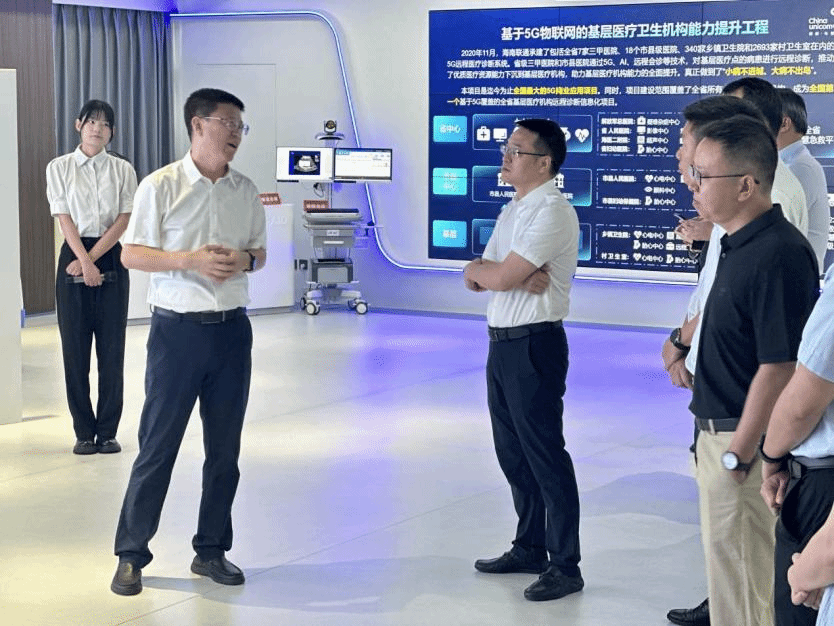 中国联通海南省分公司党委书记、总经理谢华陪同刘谦副校长一行参观海南联通科技馆,详细介绍了中国联通在科技创新、5G应用、大数据、云计算、智慧校园等方面的最新成果和技术实力。参观结束后,双方举行了座谈。