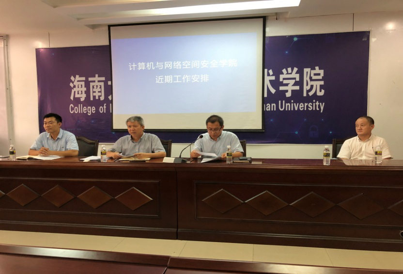 8月30日下午,计算机与网络空间安全学院在原信息学院报告厅召开新学期全院教职工大会。学院党委书记邱锡光、副院长曹春杰(主持工作)、副院长王兆晖、党委副书记黄小欧出席会议并讲话,会议由党委副书记黄小欧主持。