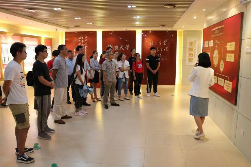 在参观中,大家不时驻足,现场分享感悟。邱锡光书记介绍了学校发展的历程,分享了一些优秀校友的光辉事迹,最后他说道,从“茅草屋大学”到入选国家“世界一流学科”建设高校,这个发展历程中凝聚了无数海大前辈的毕生心血,我们要常怀感恩之心,记住他们,还要继承他们这种深厚的爱国情怀、严谨的治学态度和无私的奉献精神,为海大的腾飞贡献我们的力量。