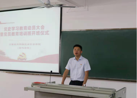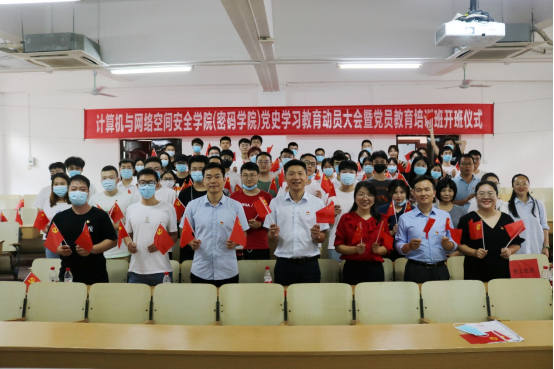 2021年3月30日,计算机与网络空间安全学院(密码学院)召开党史学习教育动员大会暨党员教育培训班开班仪式,部署党史学习教育相关工作。学院党委书记陈广锐、副书记黄小欧、副院长程杰仁、马克思主义学院副院长杨娜以及全院120余名师生党员参会。会议由学院党委副书记黄小欧主持。